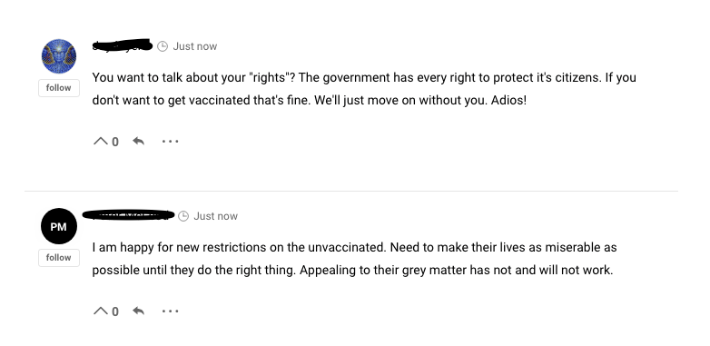 The very brief article contained a link to a CBC podcast in which the host and his guest discussed stripping away the various freedoms the unvaccinated enjoy, like full citizenship and access to services (or privileges, as they are soon to be known), until they are coerced into compliance.