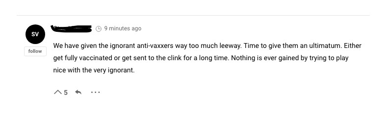 The same week that CBC featured that interview on BC Today, they also ran a piece for a podcast entitled: Time to get tough with the Unvaccinated.